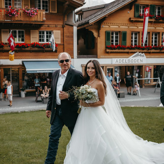 Perched high in the Bernese Oberland region, The Cambrian Hotel is a luxury retreat known for its breathtaking mountain views, contemporary design, and exceptional hospitality. For couples seeking an intimate wedding experience, it is the perfect haven to exchange vows with a backdrop of snow-capped peaks and lush valleys. The Cambrian Hotel takes pride in making each elopement unique and tailored to the couple's wishes. They offer personalized elopement packages that include everything from a romantic ceremony to a sumptuous celebration dinner. The dedicated team at the hotel works closely with the couple to ensure their dream day becomes a reality. One of the most enchanting aspects of an elopement at The Cambrian Hotel is the opportunity to have your ceremony in the heart of the Swiss Alps. Imagine saying "I do" with breathtaking vistas in the background. The backdrop of Adelboden's majestic landscape creates a cinematic moment that will be etched in your memory forever. Ashley and Nick wanted theirs to happen in the heart of the town, and, as so, after an intimate first look and some couple pictures in the area, they had an emotive ceremony with a gorgeous mountain view surrounding them. After that, they invited their guests to a cocktail at the Cambrian and to enjoy the rest of the day there with them.