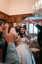 The weather outside was a bit cold, so they decided to do an apero indoors, with the comfort and warm of the fireplaces. They had a traditional seated dinner, enhanced by dancing and celebrations, and after the cake, they opened the party with a romantic dance.